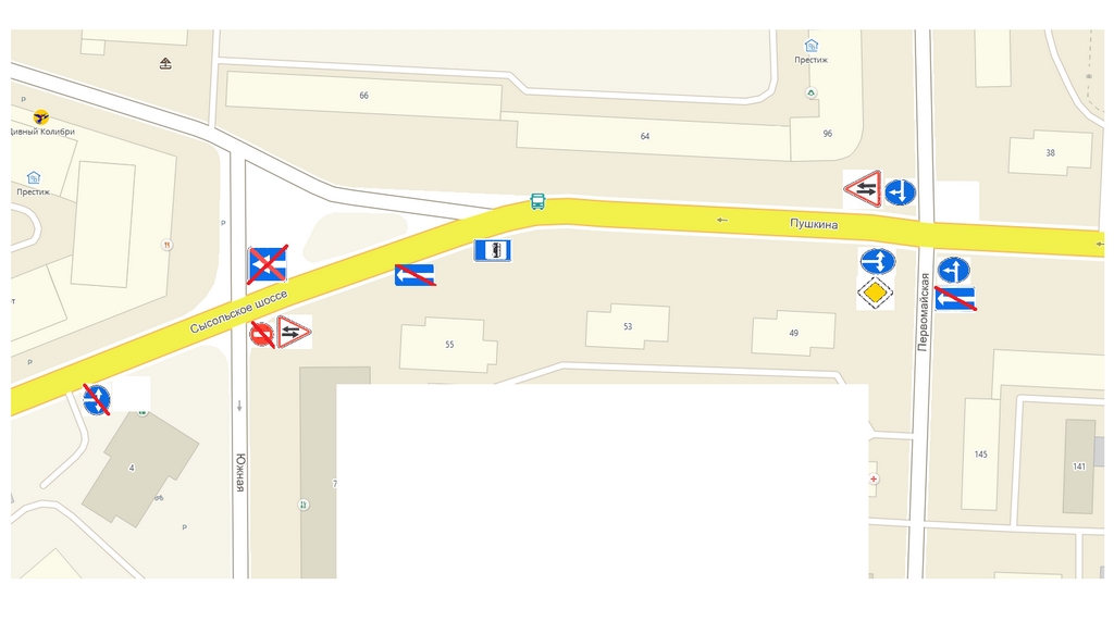 – в прямом направлении: Сысольское шоссе – Пушкинский проезд – ул. Пушкина – ул. Маркова – далее по маршруту;