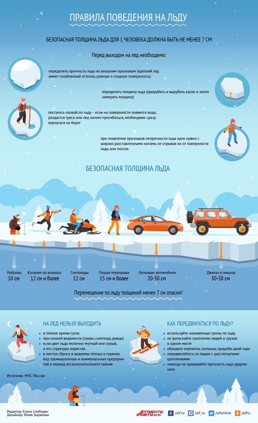 • Выходить на лед в состоянии алкогольного опьянения, прыгать и бегать по льду, собираться большим количеством людей в одной точке, выходить на тонкий лед, который образовался на реках с быстрым течением.