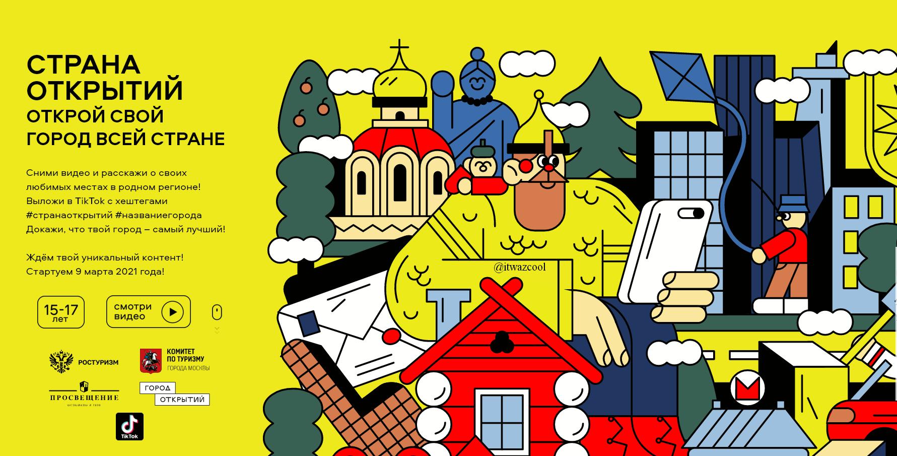 Снять ролик необходимо до 11 апреля 2021 года и выложить его на видеоплатформе TikTok с хештегами конкурса: #странаоткрытий и #названиегорода.