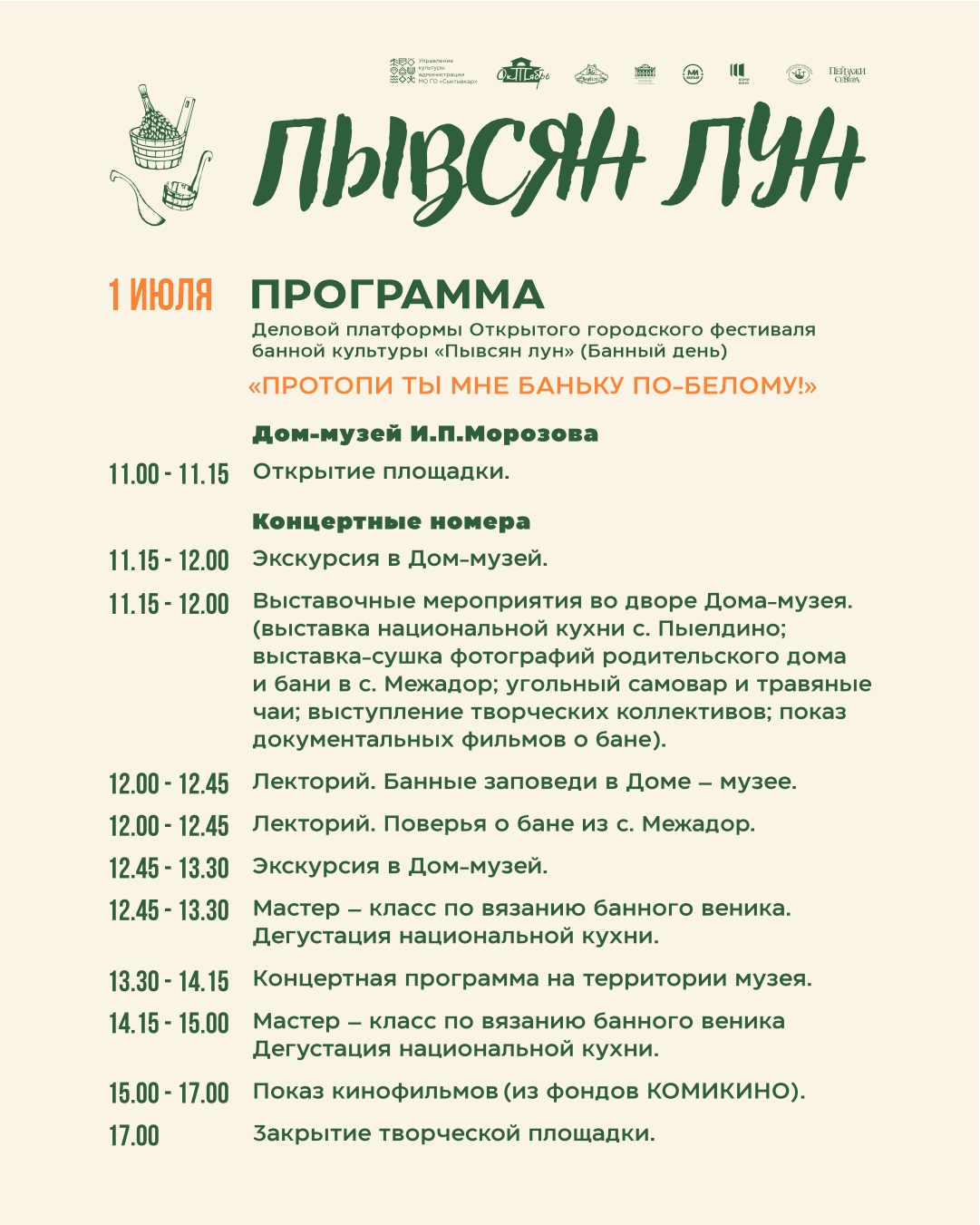 1 июля в Сыктывкаре состоится фестиваль банной культуры «Пывсян лун» (Банный день)